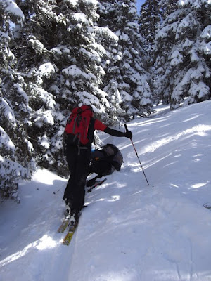 Así que nada... nos perdimos :-) Pero bueno... lo pasamos genial! Esquiando por nieve virgen, or en medio del bosque... y teniendo cuidado de las laderas inclinadas por el riesgo de aludes...