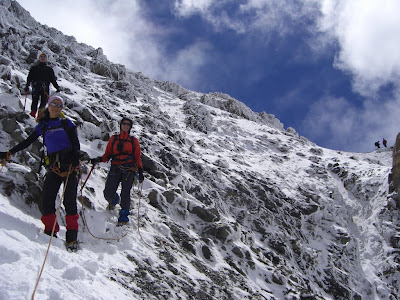 Subiendo al Cevedale. Yo en primer plano. Al fondo... el resto del refugio :-P